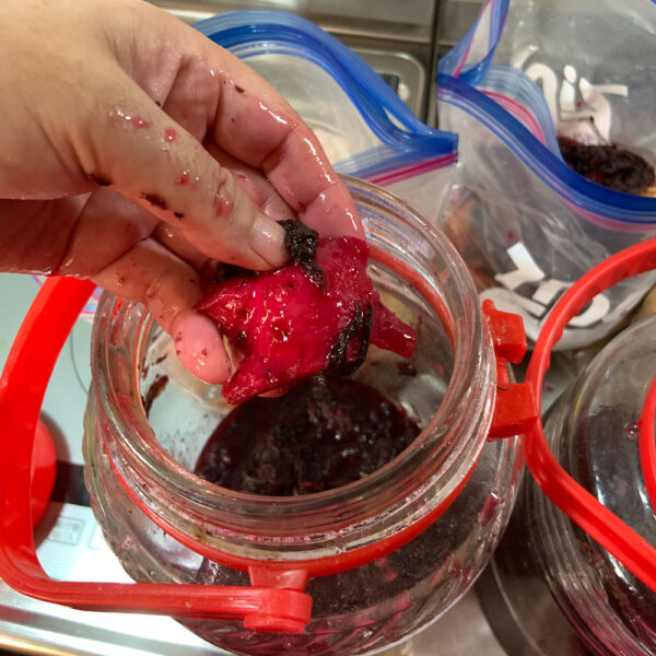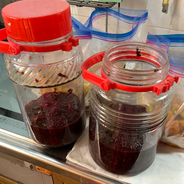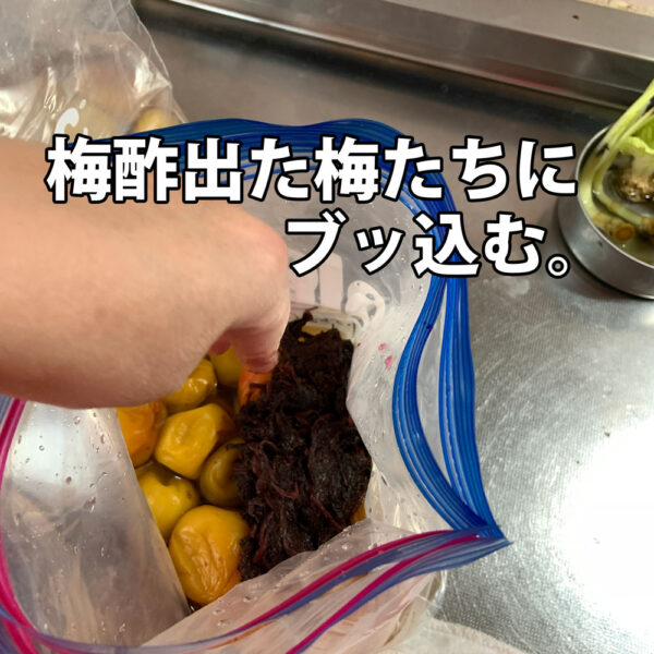 今年は新しい赤紫蘇を使わずに、去年使った赤紫蘇を再利用できるか試したかったのーー。