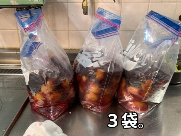 赤紫蘇3袋に振り分けました。