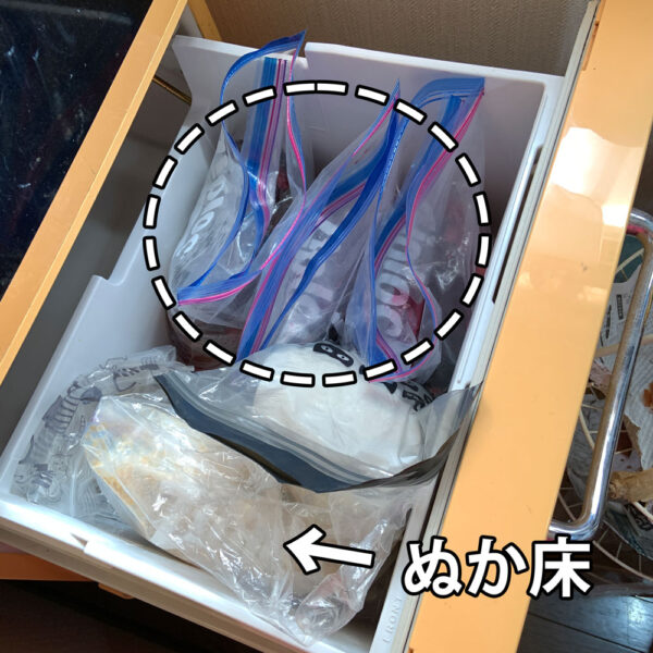 メインの冷蔵庫は別にあり、コチラは米や調味料などを冷やすための冷蔵庫でして。